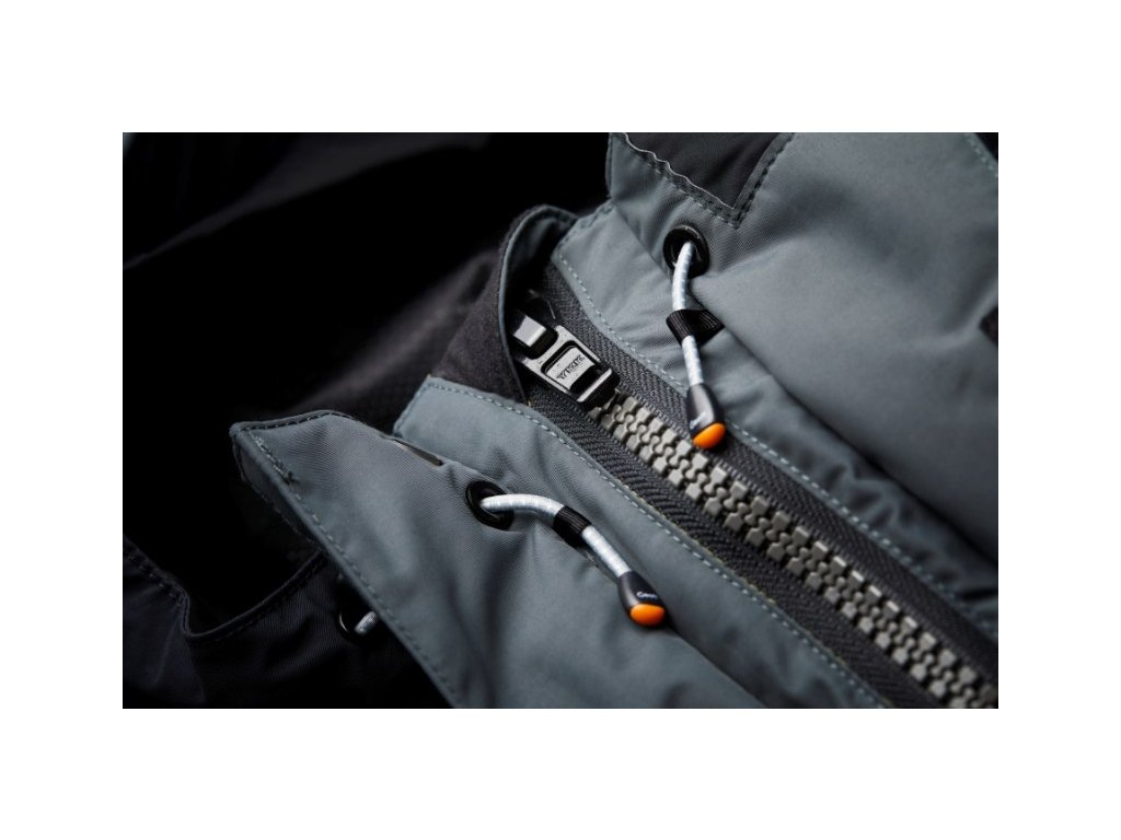 Vynikajúca hydroizolačná, priedušnosť a odrazové schopnosti tepla. Tkanina umožňuje odviesť prebytočné teplo a odpariť vlhkosť, pričom máte stály pocit sucha a pohodlia. Kapucňa je tvarovateľná s pevným šiltom. Elastický nastaviteľný systém vám umožňuje prispôsobiť kapucňu presne na vašu hlavu, aj keď nosíte šiltovku. Individuálne diely sú certifikované ECO-TEX.