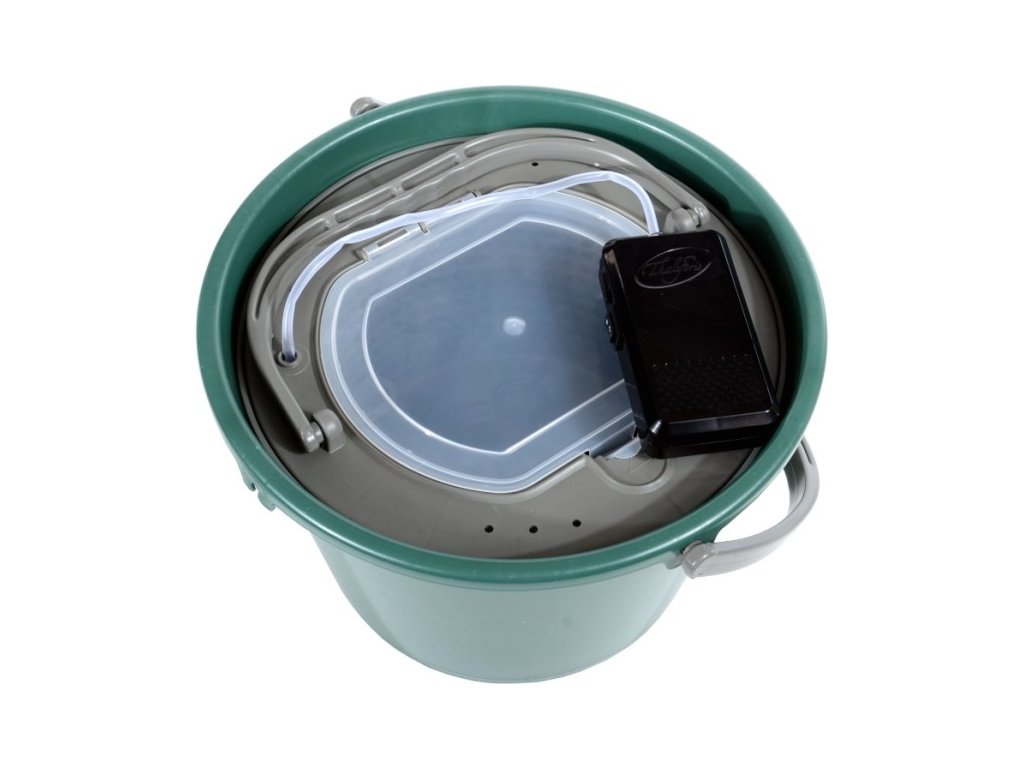 Vedro na prechovávanie rybiek - živých nástrah. Vhodný na transport rybičiek autom, po príchode na rybárske revíry možné vybrať vnútornú časť a umiestniť do vody. Najlepší spôsob prechovávania rýb priamo vo vode na lovnom mieste!