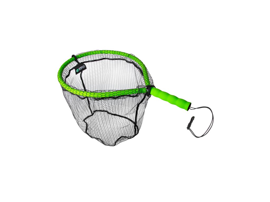 Plávajúci podberák Esox Rainbow s pevným kovovým rámom a krátkou rúčkou Podberák vhodný najmä na brodenie pri muškárine alebo prívlači. Svoje využitie nájde však aj pri love rýb z člna. Zakončený je gumou s dvomi karabínami. Hlava aj rúčka podberáka je potiahnutá plávajúcou EVA trubicou fluo farby ktorá zabraňuje strate podberáku pri vypadnutí do vody. Elegantný podberák s pevnou duralovou hlavou a pogumovanou sieťkou, ktorá je šetrná k zdraviu úlovku. Ďalšie výhody pogumovanej siete sú rýchle schnutie a nízke pohlcovanie pachov. Farba : Fluo-green