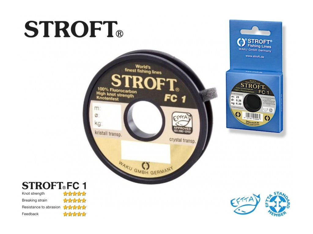 Vďaka tejto veľmi dôležitej vlastnosti a ďalším výhodným vlastnostiam fluorocarbonu STROFT, ako je odolnosť proti oderu, potopenie, citlivosť, spätná väzba, prvé rozťahovanie, správanie sa pri hádzaní, doba životnosti a viditeľnosť / neviditeľnosť, je STROFT FC 1 ideálne vhodný pre všetky typy koncových montáží.