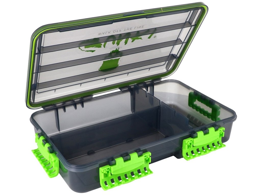 Vodotesná krabička na nástrahy s nastaviteľnými priehradkami. Vhodná predovšetkým do lode alebo na bellyboat. Tmavá farba chráni nástrahy pred UV žiarením. Rozmer: 35,5x22x8 cm.
